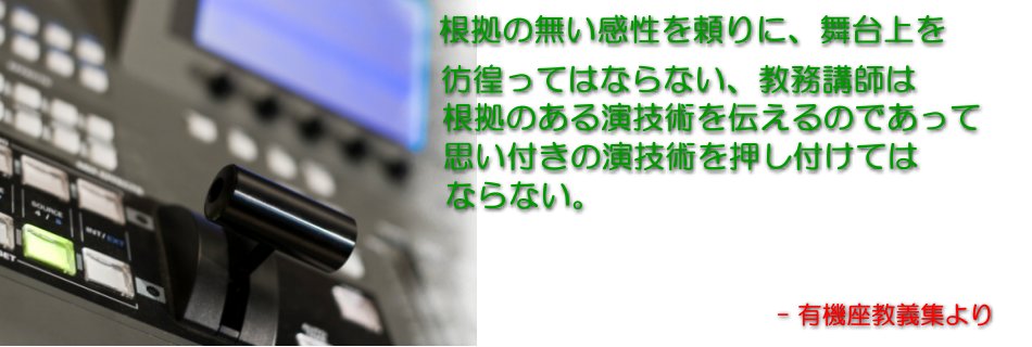 有機座教義集を使った稽 古を展開す る、新規に発足した次世代方養成所・ 事業部です。研修生の募集案内や 主催公演、出演情報をご案内して参ります。